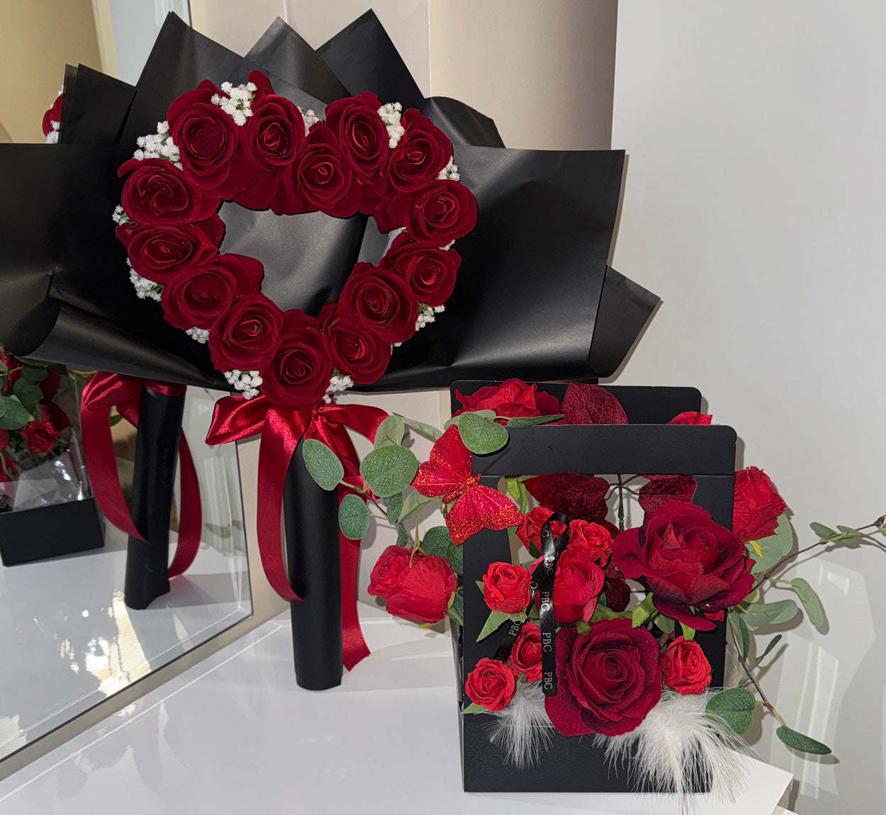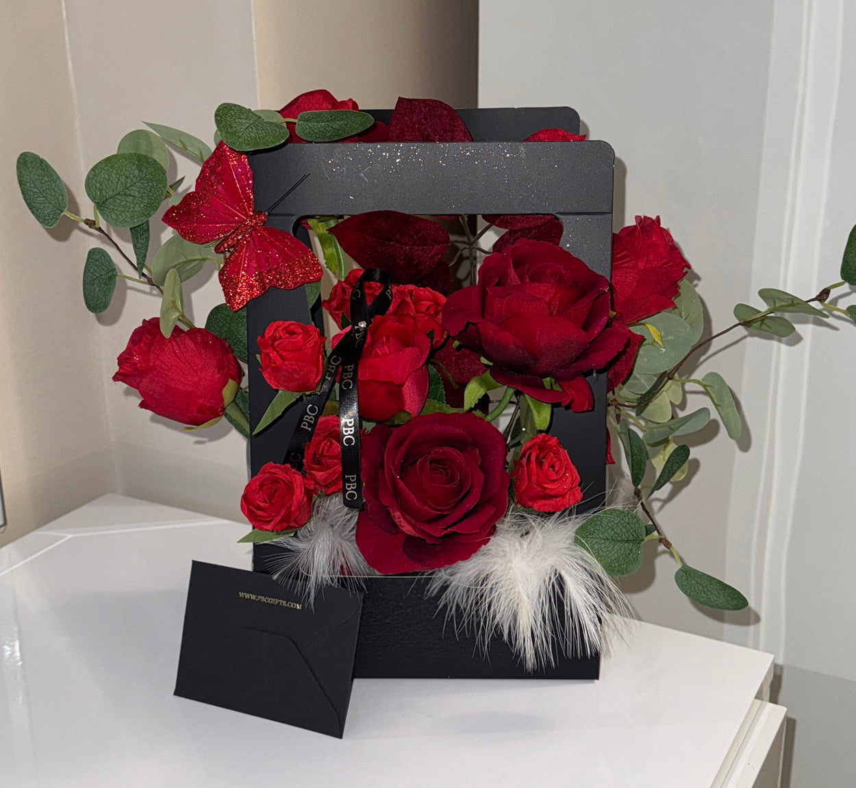 This beautiful kraft window bag is filled with stunning artificial flowers and delicate details, creating an enchanted forest–inspired illusion. A truly eye-catching piece, perfect for gifting or decorative display.